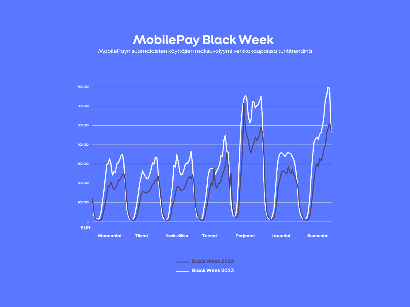 Verkkokaupan loppuvuoden kohokohta, Black Week -alennusviikko, houkutti yleisestä taloustilanteesta huolimatta ja MobilePayn kautta maksettiin ostoksia yhteensä yli 43 miljoonalla eurolla. MobilePay on maksutapana Suomessa jo yli 17 500 verkkokaupassa.